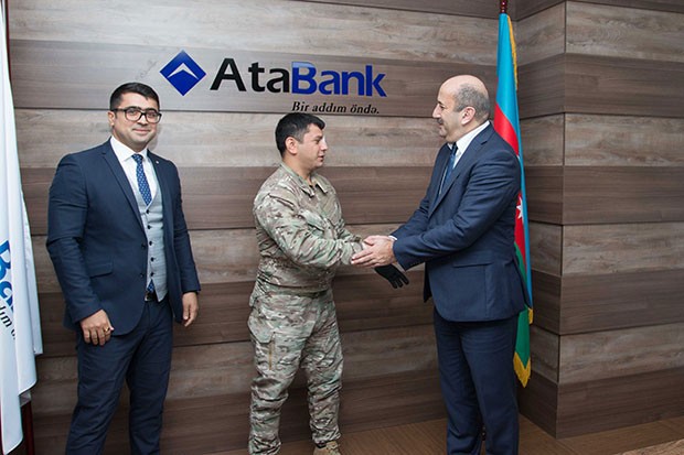 Hərbçimiz "AtaBank2ın Mərkəz filialına dəvət edilib və İdarə Heyəti sədrinin müavini Kamran Orucəliyev və Biznesin İnkişafı departamentinin direktoru Oruc İbrahimov ilə görüşüb. Görüş zamanı “AtaBank” ASC-nin İdarə Heyəti sədrinin müavini K.Orucəliyev bildirmişdir: