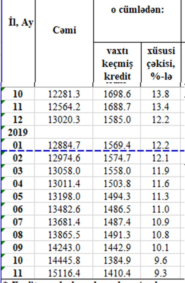 Noyabr ayında Azərbaycnda ödəmə vaxtı keçmiş kreditlər artıb.