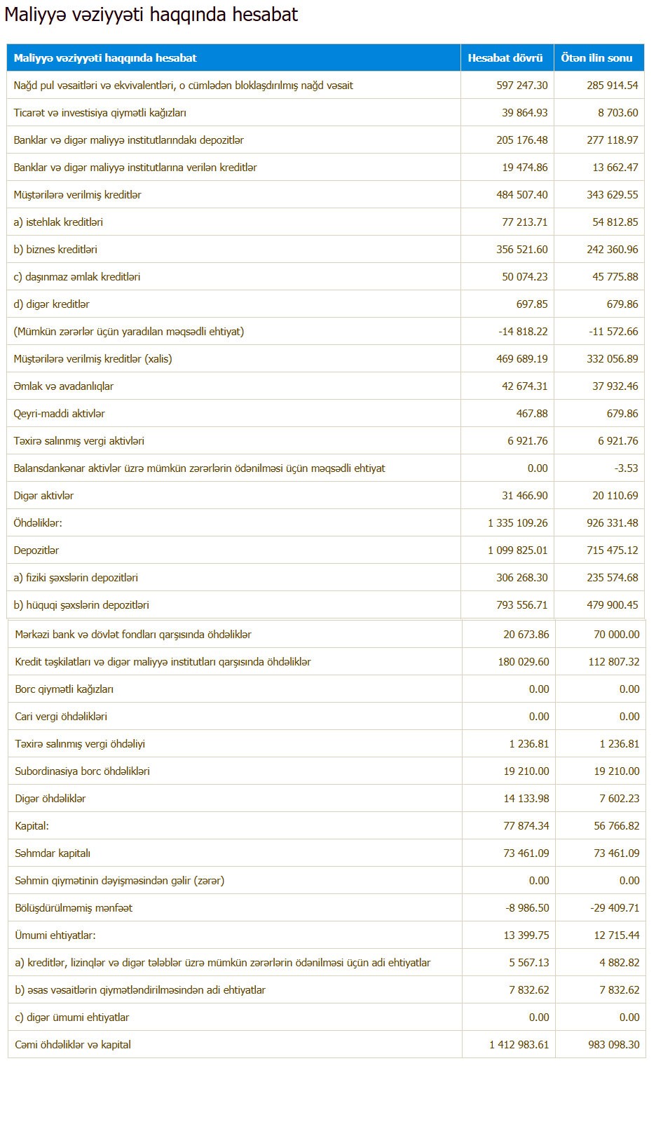 Aktivlər, cəmi gəlirlər və xalis mənfəət məbləğləri Bankın indiyədək nail olduğu ən yüksək səviyyələrdir.