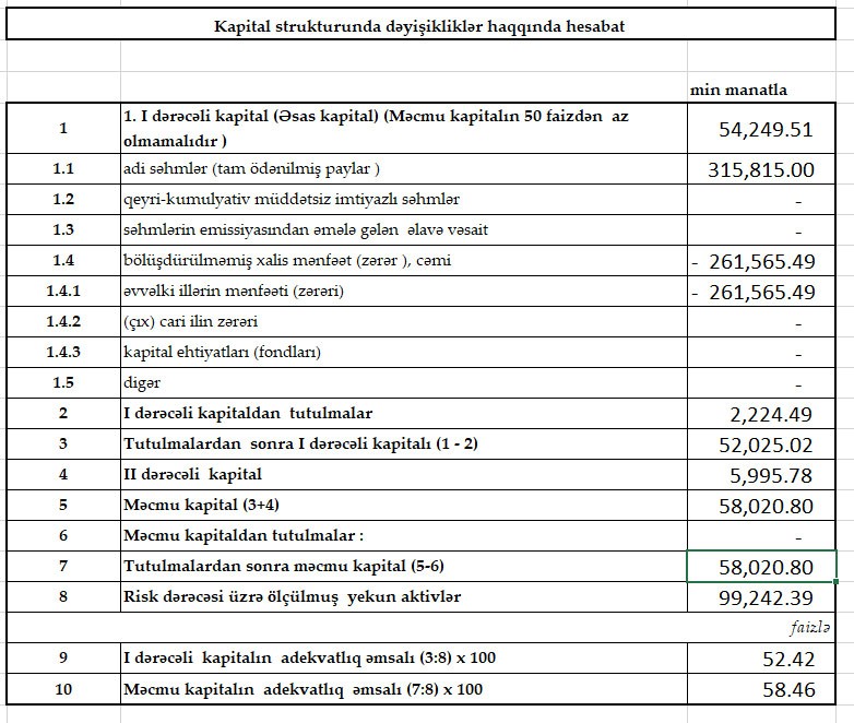 31 Dekabr 2019-cu il tarixində “VTB Bank Azərbaycan” 58 milyon 20 min manat məcmu kapitala malik olub.