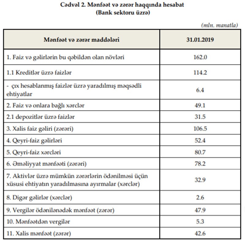 Ötən ilin Yanvar ayı ilə müqayisədə cari ilin Yanvar ayında sekroun qeyri-faiz gəlirlərinin azalması, eyni zamanda qeyri-faiz xərclərinin artması mənfəətin azalmasına təsir edib.