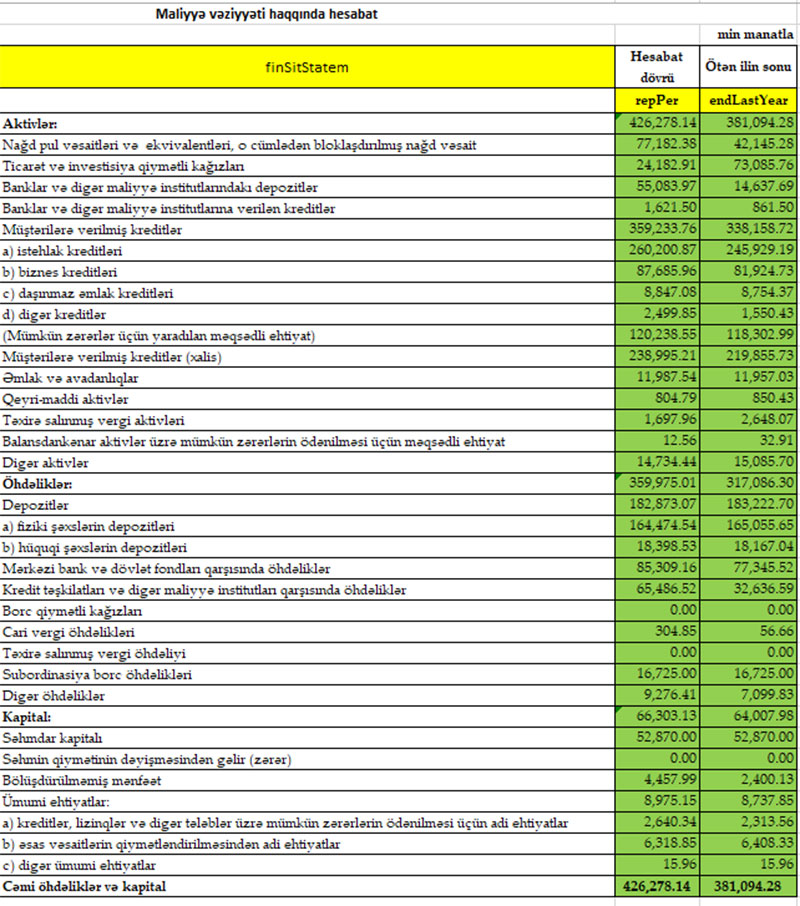 MÜŞTƏRİLƏRƏ VERİLƏN KREDİTLƏR ARTIB, BANK BÖYÜYÜB