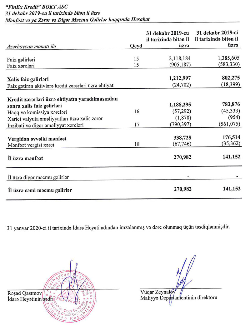 “Finex Kredit” ASC bank olmayan kredit təşkilatı (BOKT) 2019-cu ili 271 min manat xalis mənfəətlə başa vurub.