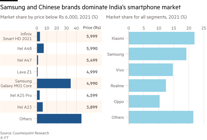 Hazırda Hindistan smartfon bazarında əsas yerləri Xiaomi (21%), Samsung (19%), digər Çin modelləri (36%) və başqaları (24%) tutur. Ucuz smartfonların qiyməti 53-80 dollar arasında dəyişir. Hələ 2016-cı ildə JioPhone modelini 426 milyon şəxsə satan startap Google-un köməkliyi ilə JioPhone Next-i ən sərfəli və ən çox istifadə olunan smartfona çevirməyi hədəfləyir.