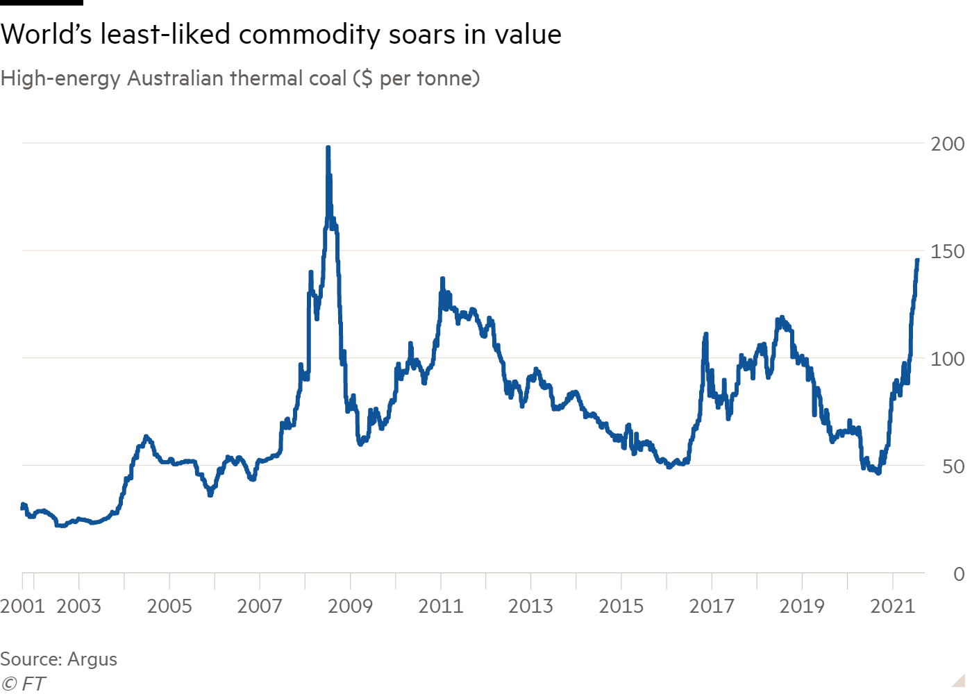 Ötən həftə əmtəə qiymətləri üzrə təhlilçi Argus şirkətinin məlumatlarına görə, Cənubi Afrikada istehsal olunan daş kömür də 44% bahalaşaraq, son 10 ildə ən yüksək qiymətə çatıb. Bununla da kömür bu ilin ən yaxşı nəticə əldə edən aktivinə çevrilib. Müqayisə üçün bildirək ki, sonrakı yerlərdə Brent nefti (44% artım), qlobal daşınmaz əmlak bazarı (28% artım) və texnoloji şirkətlərin səhmləri (25%) gəlir.
