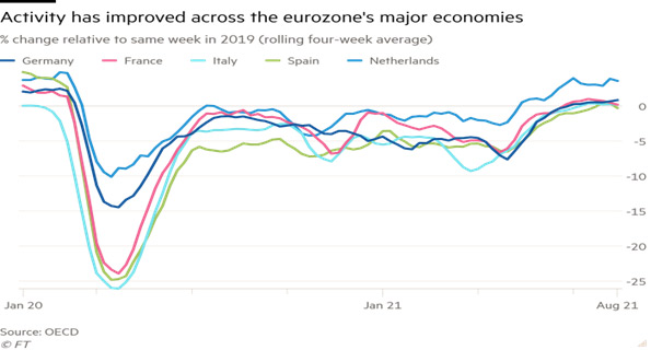 Əksər iqtisadi ekspertlər cari ilin 3-cü rübündə Avrozonada ÜDM artmının 2,8-3% olacağını proqnozlaşdırır. Pandemiyadan əvvəlki səviyyəyə isə gələn ilin ortalarında çatmaq mümkün olacaq.
