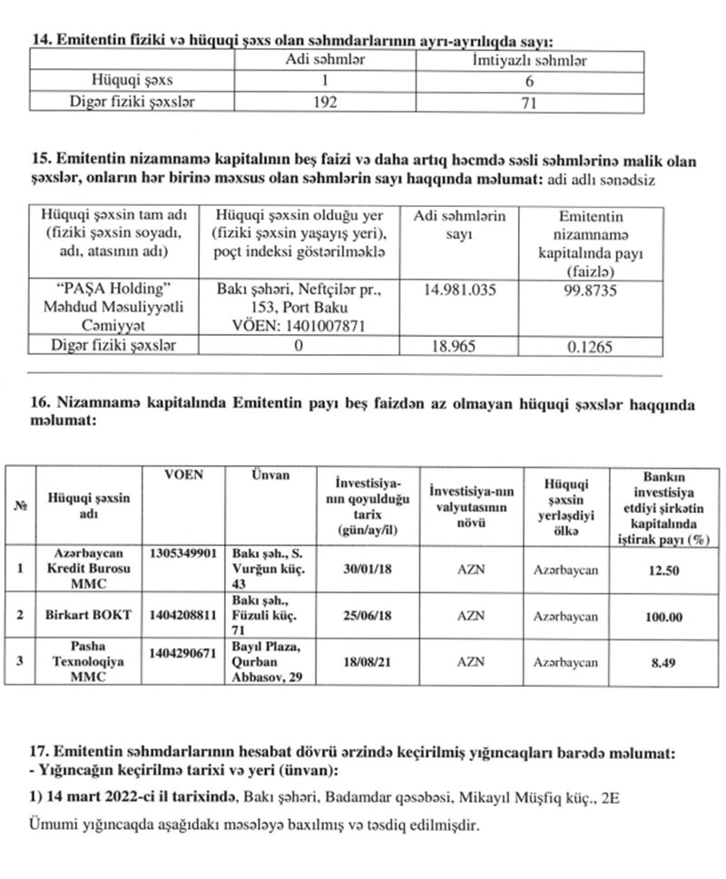 Xatırladaq ki, “PASHA Technology” 2018-ci ildə yaradılıb. Onun nizamnamə kapitalı 23 951 519 manatdır. “Kapital Bank” ötən ilin II yarısında onun həmtəsisçisi olub.